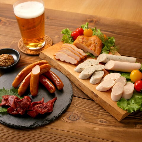 【数量・内容】ウィンナー150g、むねパストラミ150g、リオナソーセージ(チーズ)80g、リオナソーセージ(レモンパセリ)80g、砂肝燻製60g