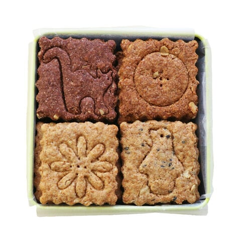【数量・内容】プレーン、黒ごま、キャラメルナッツ、カカオ 各5枚
