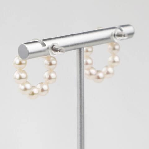 「Seashore宇和島あこや真珠 アコヤ真珠 10粒 ピアス」は、職人により、ひとつひとつ手作業でオールノット加工したピアスです。(オールノットとは、糸を使用し 真珠と真珠の間に、結び目をいれた加工のことです。糸は、絹のような輝きを持ち、耐久性に優れた超高密度ポリエチレン素材の超高強力糸GPTを使用しています。)あこや真珠を10ピース使用し、ラウンド(円形)状にしております。ラウンド状に並んだ真珠が、カモミールやひまわりの花びらのように見える、可憐でかわいい仕上がりになりました。顔周りをパッと明るく、華やかに彩ります。化粧箱に入れてお届けしますので、ギフト、プレゼント、贈り物などにもご利用ください。