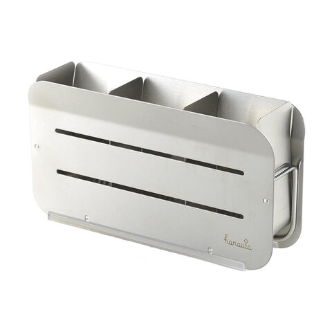 「水切り用箸立て シルバー」は「hanauta/ハナウタ」ブランドの水切りラック専用の箸立てです。水切りラックに取り付けて使用するほか、箸立て単独でもご使用いただけます。仕切りは取り外せるのでお手入れもラクラク。細かいカトラリーが飛び出しにくく、使いやすいです。