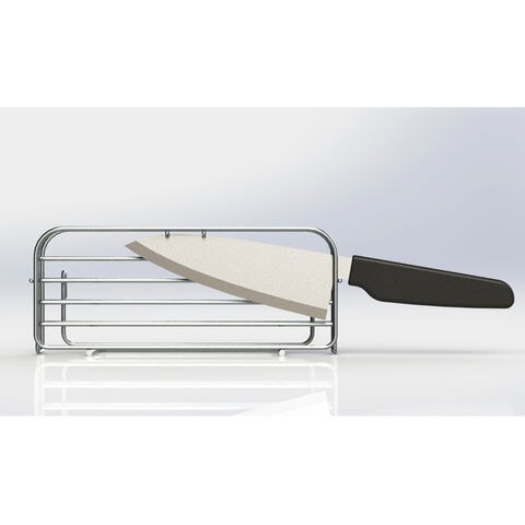 テコの原理で包丁の柄の重みを利用して刃を浮かせる構造なので、包丁の刃に直接ステンレスが当たるのを防ぎます。