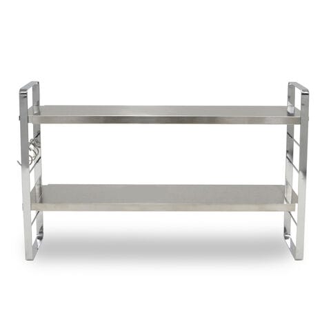 「伸縮スリムラック」は、スぺースに合わせてお使いいただける伸縮機能付きのスリムラックです。伸縮幅は約52cm~91cmまで調整可能です。下の棚は移動できるので、置くものに合わせて高さを変更できます。