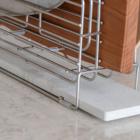 日本製の吸水素材モイスを組み合わせた「まな板&包丁スタンド」です。吸水・速乾機能があるモイストレイが滴る水をしっかり吸水し、徐々に空気中に放出してくれるので、お手入れラクラクです。まな板&包丁スタンドは新潟県で製造しています。