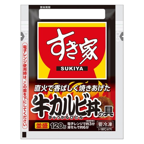 国内外に店舗を展開する牛丼チェーン”すき家”の味を家庭で手軽に楽しめる「すき家 牛カルビ丼の具」です。電子レンジで温めて、ほかほかのご飯にのせるだけの簡単調理。炭火で香ばしく焼き上げたカルビ肉特有のうまみがじゅわっと広がり、ご飯がすすみます。時短で調理できますので、昼食、夕食、夜食など、さまざまなシーンでご活用ください。スリムな袋入りの冷凍牛カルビ丼の具なので、保存にも便利。ストックや常備品などにもおすすめです。