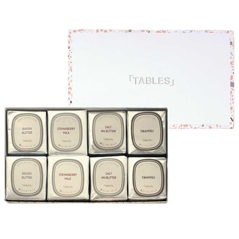「TABLES 堀江バターサンド プレミアムBOX ギフト」は、TABLES(タブレス)のレギュラーフレーバーのアソートセットです。自然な甘さと深いコク、洗練された味わいを楽しめる、大人にこそ贈りたいスイーツです。