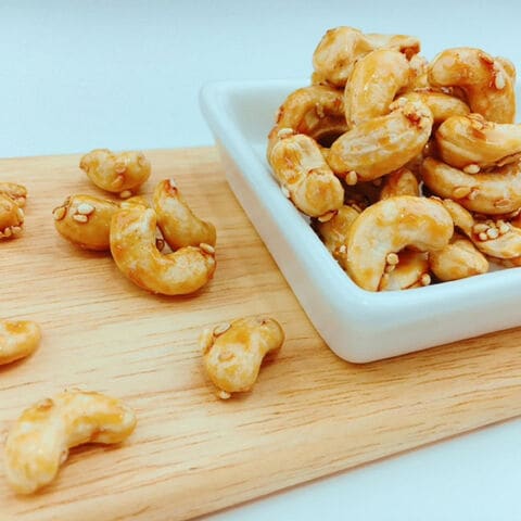 【カシューナッツ】カシューナッツ(インド産またはベトナム産)、ごま、水あめ、砂糖、麦芽糖、しょうゆ(小麦・大豆を含む)、食塩