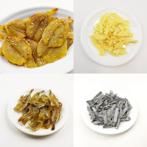 【数量・内容】ごま香るのどぐろの炙り焼37g、旨みたっぷりえびの炙り焼35g、濃厚焼うにのぷちキューブ35g(個包装紙含む)、もっちり濃厚チーズいか45g、あっさり上品な焼さより32g、爽やか梅のおやつ昆布20g