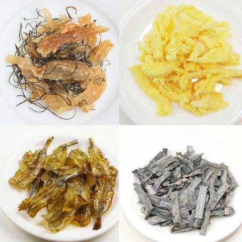 【数量・内容】まるごとサクサク甘えび干20g、さばの香ばしジャーキー50g、ひとくちいかあしのスモーク40g、つまみたら昆布和え40g、もっちり濃厚チーズいか30g、あっさり上品な焼さより32g、爽やか梅のおやつ昆布17g