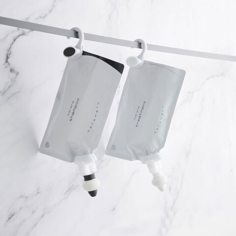 【数量・内容】シャンプー300ml×1、トリートメント300g×1、詰め替えそのままmini(フック、ノズル)×2