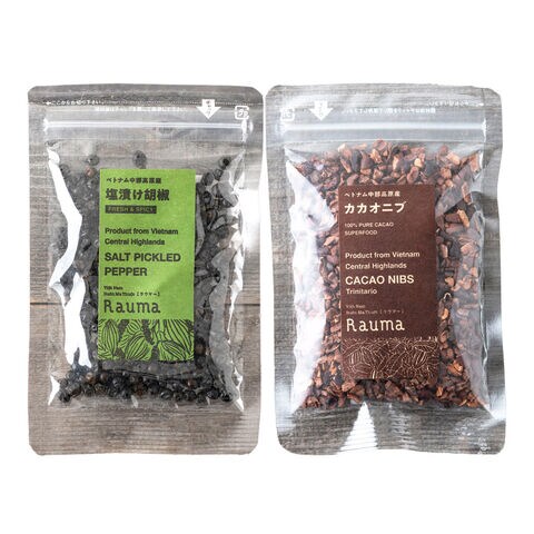 【数量・内容】塩漬け胡椒25g、カカオニブ50g