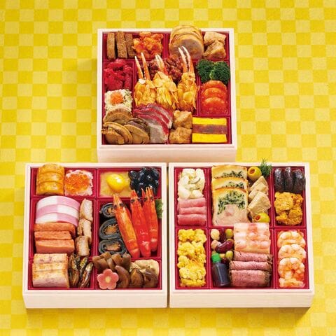 札幌グランドホテルの第十代総料理長、伊藤博之監修による歴史と伝統の味が盛り込まれた「和洋中おせち 三段重 福の宴」です。伝統的なおせちに加えて、海と山の食材を使った多彩なメニューを味わえるのが魅力。和洋中それぞれの素材と味を吟味し、新春を迎えるにふさわしく、上品に仕上げました。素材の良さを引き出し、丹精込めた料理の数々。急速冷凍技術により格別の美味しさを実現いたしました。一度解凍したお料理は再冷凍せず、お早めにお召し上がりください。