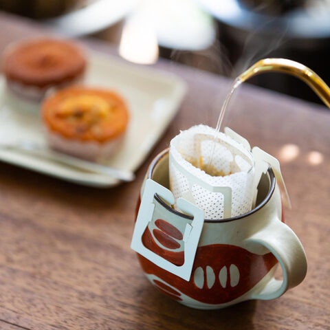お湯とカップさえあれば、どこでも簡単に飲める「金魚 ちょうちんブレンド 2種 あっさり しっかり ドリップバッグ」です。山口県柳井市の郷土民芸品、愛らしくてちょっとおとぼけ顔の金魚ちょうちんのかわいいパッケージに入っています。