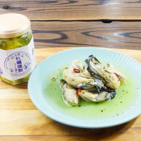 <北陸牡蠣燻製オイル漬け>新鮮な能登牡蠣を使用し、塩、香辛料だけで味付けしました。牡蠣の旨みが凝縮した濃厚な味わいをご堪能いただけます。