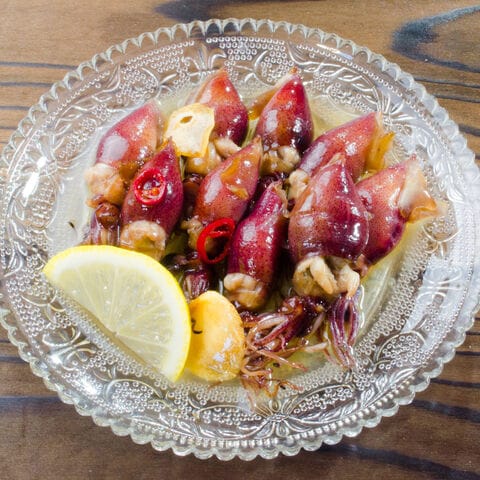 <富山湾ホタルイカ燻製オイル漬け>富山湾で水揚げされたホタルイカをボイル、オリジナルブレンドのソミュール液に漬け込んだあと、サクラのチップで燻製にしてからオイルに漬けました。手間と時間を惜しまず、丁寧に仕上げた自慢の商品です。