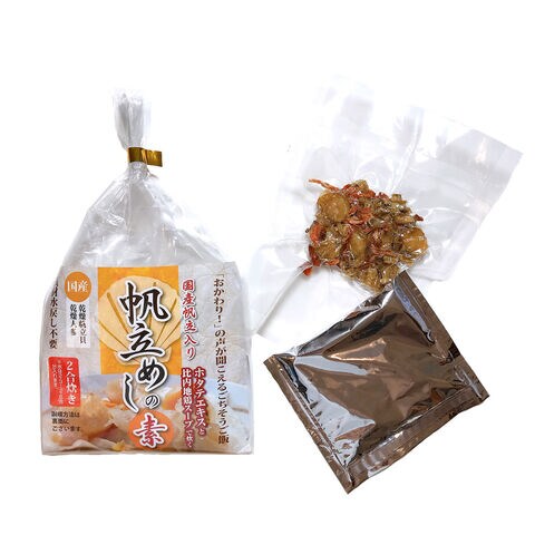 海の幸帆立のだしとコクのある比内地鶏のWスープで炊き上げる「国産 比内地鶏スープで炊く 帆立めしの素 2合用」です。お米に混ぜて炊くだけの簡単調理なので、どなたでも手軽に帆立の旨さが広がる炊き込みごはんを楽しめます。乾燥具材(ホタテと人参)の乾物のうま味も炊飯中のご飯にプラスされ、スープ&乾物のWの旨みが詰まった帆立めしを美味しくお召し上がりいただけます。