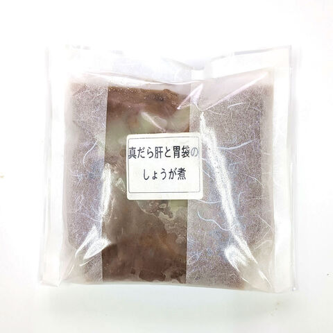 こってりした鱈の肝と魚のホルモンである胃袋を甘辛く煮付けた「冷凍 真鱈肝と胃袋の生姜煮」です。真鱈の肝と胃袋をあぶら抜き処理をして、生姜をたっぷり入れて仕上げました。やさしい食感、濃厚な味わいを楽しめます。非常に食べやすく、美味しくお召し上がりいただけますので、ぜひ一度ご賞味ください。お酒のおとも、おつまみ、おかずなどにもどうぞ。