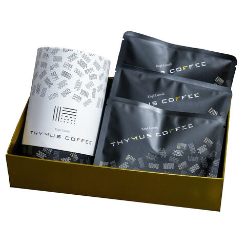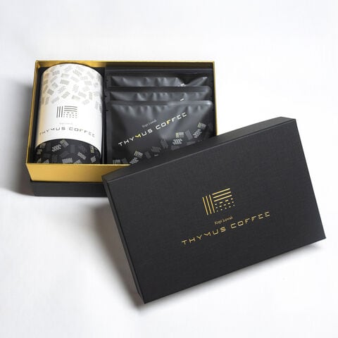 「THYMUS COFFEE 珈琲 コピ ルアク 焙煎豆 ドリップパック」は、高級コーヒーで知られるコピ・ルアクの焙煎豆とカップオンドリップパックのセットです。国内のデザインセレクションにて選定されたおしゃれなパッケージは、贈り物としての価値を高めます。シックなデザインは、受け取った方に感動していただけること間違いなしです。ギフトや手土産などにぴったりですので、ぜひご利用ください。定価と比較して、大胆にお得な価格設定とさせていただいております。