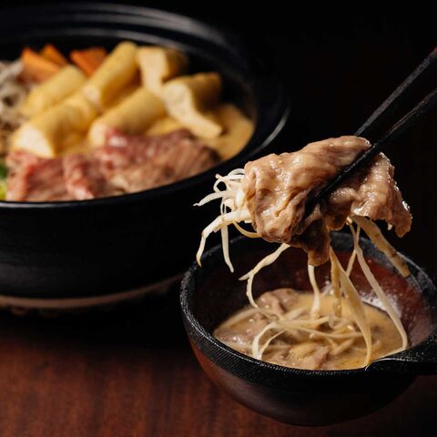 「カトーミート とやま和牛 ごぼ鍋セット ギフト」は、富山県の老舗肉屋がつくった自信作です。和牛・ごぼう・酒粕が融合した、ありそうでなかった鍋料理です。酒粕で育った富山のブランド和牛を美味しく食べる相方を探し、風味や食感を求め辿りついたのが「ごぼう」。世界でもごぼうを食べるのはほぼ日本人で、古くは平安時代から食されており、私たちの味覚に深く影響している野菜です。そのごぼうを1本丸ごと、和牛とマッチする薄さにスライスすることで、どこか懐かしさもある新食感の一品が生まれました。酒粕で育った和牛から着想を得て、内容量の約半分に酒粕を使用した「特製味噌」は、すべての具材を豊かな味わいに引き立てます。薄くスライスした和牛でごぼうを包み、スープに絡めてお召し上がりください。なつかしくて新しいハーモニーをお楽しみいただけます。