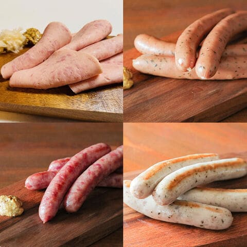 【数量・内容】焼きソーセージ160g、チキンソーセージ150g、カルトッフェルヴルスト150g、ポークウィンナー150g、ヤークトヴルスト5枚