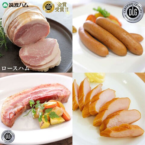 「筑波ハム ギフト 詰め合わせ」は、2024年DLGコンテスト(ドイツ農業協会主催の国際ハム・ソーセージ品質コンテスト)で金賞を受賞した「ロースハム」を中心としたセットせです。筑波ハム自慢の職人の技が光る燻煙技術をご堪能ください。お中元やお歳暮、内祝などの贈り物シーンにもおすすめです。