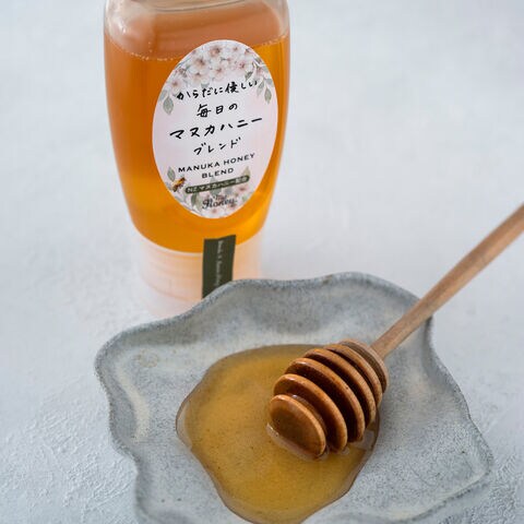 はちみつ専門店”MYHONEY(マイハニー)”がお届けする「からだに優しい 毎日のマヌカハニーブレンド」です。ニュージーランド産のマヌカはちみつを使用し、マヌカ特有の風味と特性を活かしながら、ハンガリー産のアカシアはちみつをバランスよくブレンドしました。マヌカはちみつのクセを抑えることで、自然でやさしい甘さを実現し、毎日無理なく続けられる味わいに仕上げました。はちみつ本来の風味を大切にするため、余分な加熱を行わず、低温管理のもと丁寧にブレンドしています。マヌカはちみつが初めての方でも取り入れやすい、まろやかでやさしい味わいが特徴です。そのままスプーンで召し上がるほか、パンやヨーグルトにかけたり、紅茶や白湯などの飲み物に加えたりと、幅広いアレンジでお楽しみいただけます。さまざまな食品と相性が良く、毎日のはちみつ習慣におすすめです。