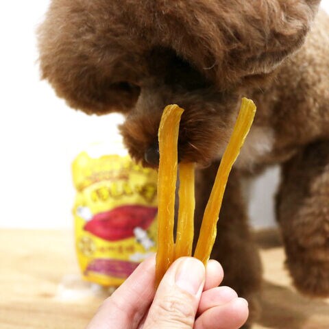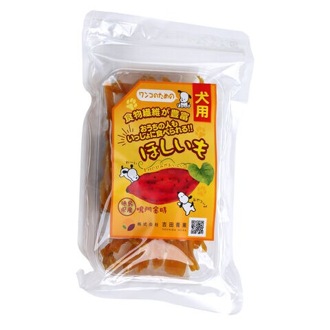 徳島県の吉田青果がお届けする「犬用 ほしいも 徳島県産 鳴門金時 おやつ」です。原料に徳島県のブランドさつまいも「鳴門金時(なるときんとき)」を使用。鳴門金時には食物繊維、ビタミンCが豊富に含まれています。人間だけでなく、犬にもおすすめです。さつまいもを茹で上げ、程よい固さに乾燥させています。原材料はさつまいものみを使用し、無添加で仕上げております。おうちの人も一緒に食べられるおやつです。
