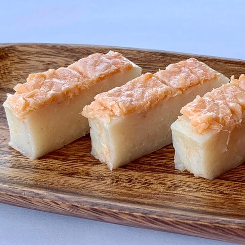「かねまん本舗 創作かまぼこ シーフードケーキ 食べ比べ」は、見た目がケーキのように華やかなかまぼこ5種のセットです。シーフード(魚介類)を色鮮やかにアレンジしたかまぼこを、かねまん本舗ではシーフードケーキと呼んでいます。年代を問わず幅広く親しんでいただきたいという気持ちも込めています。たらこ、鮭&蟹、ズワイ蟹、貝柱、チーズそれぞれの美味しさをご賞味ください。