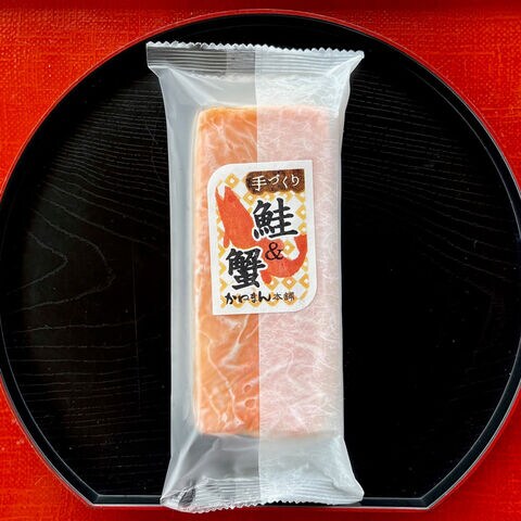 【原材料】魚肉(ミナミダラ(ニュージーランド)、グチ)、鮭、ベニズワイガニ(ほぐし身)、でん粉(小麦を含む)、砂糖、本みりん、食塩/トレハロース、調味料(アミノ酸等)、香料、大豆粉、乳化剤