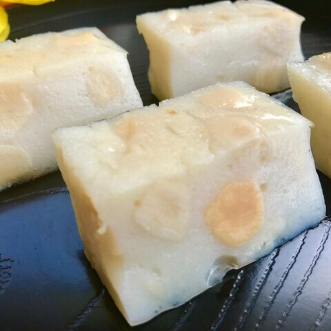 【原材料】魚肉(ミナミダラ(ニュージーランド)、グチ)、イタヤ貝柱、でん粉(小麦を含む)、砂糖、本みりん、食塩/トレハロース、調味料(アミノ酸等)、大豆粉、乳化剤