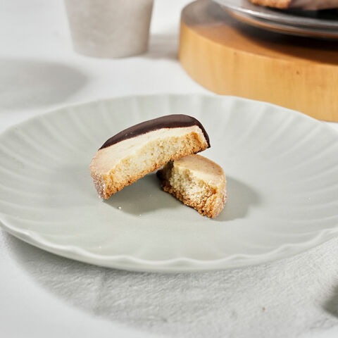 【原材料】小麦粉(国内製造)、無塩バター、砂糖、チョコレート、アーモンドパウダー、卵白、ゲランドの塩、バニラペースト/ベーキングパウダー、乳化剤、香料、増粘剤(キサンタンガム)、(一部に乳成分・小麦・卵・アーモンド・大豆を含む)