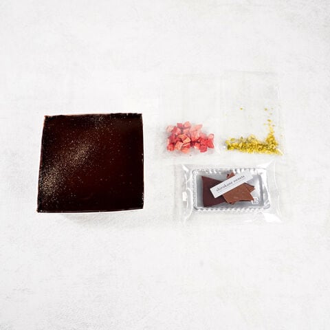 <飾り>チョコレート(国内製造)、ピスタチオ、フリーズドライイチゴ/乳化剤、金箔、(一部に乳成分・大豆を含む)