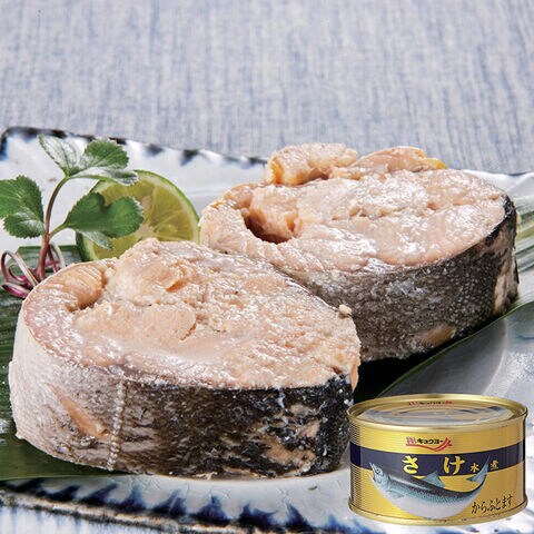 さまざまなお料理に活用できる「さけ 水煮 缶詰 からふとます」です。素材の旨味を引き出す「水煮」は原材料が鮭と塩のみ。シンプルな味付けだからこそ、素材自体の旨味を存分に楽しめます。そのままでも美味しくお召し上がりいただけるほか、お料理の素材としても使い勝手が良く、食べ方はいろいろです。チャーハン、サラダ、ピザ、シチューやグラタンなどの具材におすすめです。本品はギフト等にも使われてきた一品で、缶を開けると立派な身がギッシリ詰まっています。ご自宅用はもちろん、贈り物としてもご満足いただけます。