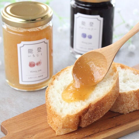 <能登いちじくジャム>いちじく(石川県能登産)、ビートグラニュー糖、蜂蜜/酸化防止剤(ビタミンC)、ゲル化剤(ペクチン:リンゴ由来)