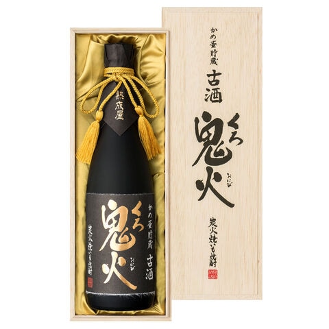 かめ壷貯蔵 古酒「くろ鬼火(おにび)」は、鹿児島県いちき串木野市に蔵を構える田崎酒造(たさきしゅぞう)の熟成炭火焼きいも焼酎の傑作です。種子島産紫芋を、炭火でじっくり焼いて黒麹で仕込み、かめ壺で貯蔵・長期熟成させた平成17年製造の古酒。熟成古酒の香りと深いコク、まろやかな甘味をお楽しみいただけます。田崎酒造の渾身のひと品をお取り寄せでご堪能ください。木箱に入れてお届けしますので、ギフト、プレゼント、贈答品などにもおすすめです。