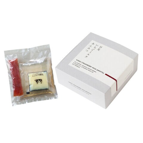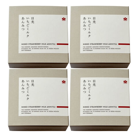 「日光いちごミルクあんみつ ギフトセット」は、栃木県日光市の老舗3社のコラボで誕生した日光新名物の和スイーツです。冷涼な気候から甘みを引き出すいちご農園、とちおとめを栽培する”CulDyna Group 池田農園(池田種苗店運営)”、果実感を大切に練り上げる製餡所”黒須製餡所”、大正7年(1918年)に創業した寒天づくり100年超えの老舗”北野谷商店”の3社で共同開発。日光連山の麓でそれぞれの家業を継ぐ3人が、自然の恵みを甘酸っぱい和スイーツに仕上げました。一番の特徴は、日光の銘水で育てた「とちおとめ」を使った“いちご餡”です。餡子づくりの際も日光銘水を使い、いちごの甘み・香り・酸味を楽しめる爽やかな餡に仕上げました。寒天は、創業時からところてん・寒天を製造してきた北野谷商店の自信作。国産天草のみを使い、昔ながらの開放蒸気釜で手間暇かけてつくっています。
