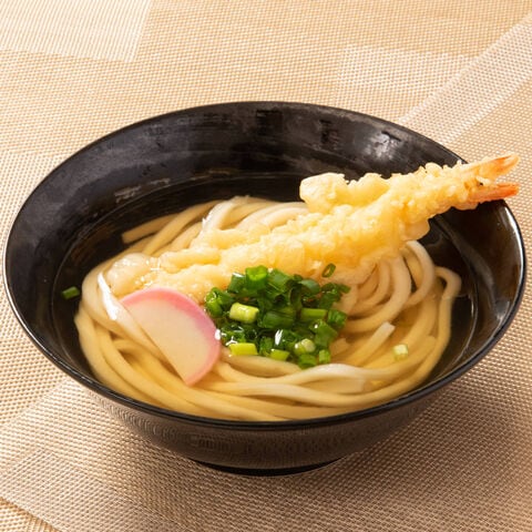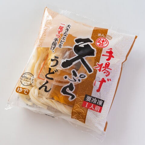 「めん工房辻麺 手揚げエビ天入 天ぷらうどん」は、ぷりぷりの大きなえびをカラッと揚げ、セットした贅沢な一品です。日常のごちそうにいかがでしょうか。めん、濃縮スープ、具材(えび天ぷら、ねぎ、かまぼこ)が一式そろった便利なセットです。冷凍でお届けしますので、鍋で調理してお召し上がりください。自然解凍はしないでください。