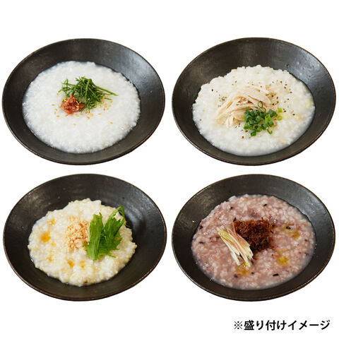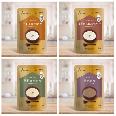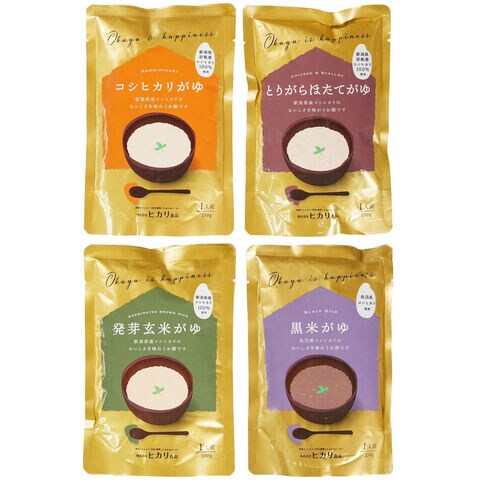 【数量・内容】コシヒカリがゆ250g、とりがらほたてがゆ250g、発芽玄米がゆ200g、黒米がゆ250g 各5
