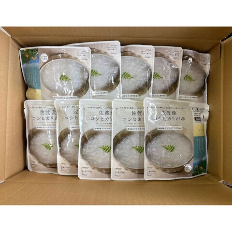 【数量・内容】佐渡産コシヒカリがゆ250g、白だし香る湯葉がゆ250g、コシヒカリぜんざい200g 各10