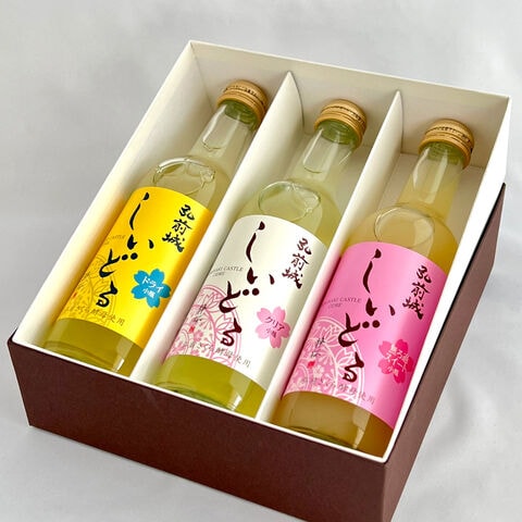 「弘前銘醸 弘前城しいどる シードル 飲み比べ ギフトセット」は、桜の名所で名高い弘前城公園の「日本最古級のソメイヨシノ」の天然花酵母を使用し、青森県産りんご100%でつくったりんごのスパークリングワイン(シードル)3種の詰め合わせです。低アルコールですっきり・さっぱりとした味わい。さくら花酵母が生み出す独特の風味を持つ、奥ゆかしくも華やかな「和」のシードルを飲み比べてお愉しみください。