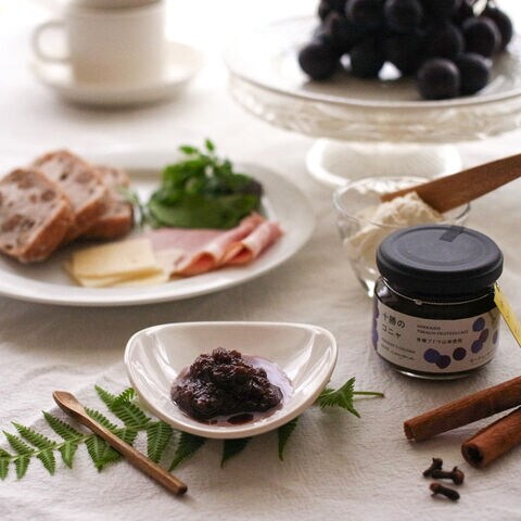 <コニャ>ブドウ(北海道産)、リンゴ(北海道産)、プラム(北海道産)、キビ糖、糖蜜、くるみ、セイロンシナモン、クローブ