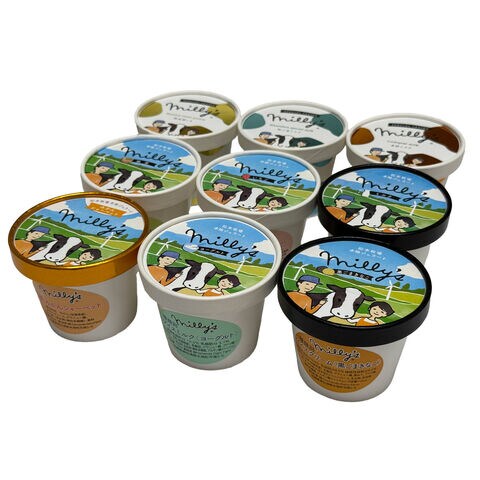 【数量・内容】金柑ミルク、和三盆ミルク、熟成唐いも、ミルク、いちご、抹茶、ヨーグルト、黒ごまきなこ、みかんシャーベット 各110ml