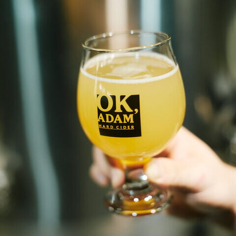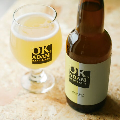 「秋田 OK,ADAM ハードサイダー HOP IN!(ホップイン)」は、秋田県横手産ホップ”IBUKI(いぶき)”、横手産りんごを使用したお酒です。華やかな香りのふじを中心に、レモンやライムのような香りの紅の夢(くれないのゆめ)、さわやかな酸と渋みがある紅玉を使用してバランスを取りました。IBUKIとの相性を考え、ホップの量、品種を調整。多層なホップの香りを生み出すために、様々な品種をブレンド。香りを最大限に引き出すため、発酵中に香りが変化する白ワイン酵母を使用しています。ホップ由来のグレープフルーツやパッションフルーツ、マスカット等の香りの奥に、りんごの華やかさも感じられる香り。飲み口は非常にドライですが、りんごの酸味や渋み、ホップ由来の苦味や渋みでボディも残した味わいです。すっきりと飲めるような清々しい香りと味わいに仕上げました。横手からのさわやかな一杯をぜひお楽しみください。