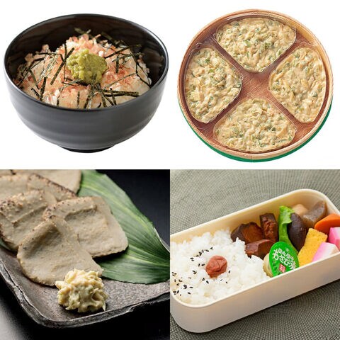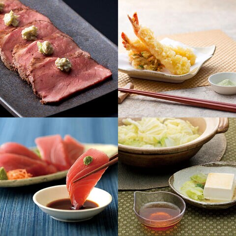 <わさび漬ミニカップいろいろ>わさび漬(わさび(国産)、漬け原材料(酒かす、砂糖、食塩、からし粉、還元水飴)/調味料(アミノ酸))、数の子入りわさび漬(わさび(国産)、数の子(アメリカ、カナダ)、漬け原材料(酒かす、砂糖、食塩、からし粉、還元水飴)/調味料(アミノ酸等:大豆由来))、ソフトわさび漬(守口大根(国産)、わさび(国産)、白うり(国産)、きゅうり(国産)、漬け材料(酒かす、砂糖、還元水飴、食塩、からし粉)/調味料(アミノ酸等))、わさびのり(醤油(小麦・大豆を含む、国内製造)、水飴、砂糖、のり、還元水飴、からし粉、わさび、酵母エキス、食塩/カラメル色素、増粘剤(加工でん粉、タマリンドガム)、調味料(アミノ酸)、香料))、うに入りわさび漬け(わさび(国産)、塩うに(チリ、カナダ)、漬け原材料(酒かす、砂糖、鶏卵(卵含む))、食塩、からし粉、還元水飴、水飴、でん粉、たんぱく加水分解物(大豆を含む)、酵母エキス)/調味料(アミノ酸等:大豆由来)、酒精。トレハロース、増粘多糖類、着色料(パプリカ色素、黄4、黄5)、甘味料(ステビア)、ミョウバン