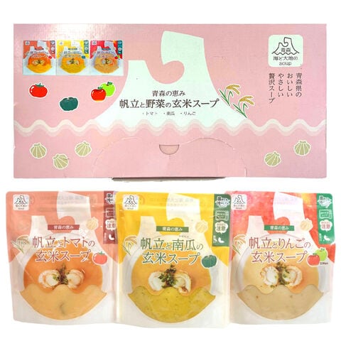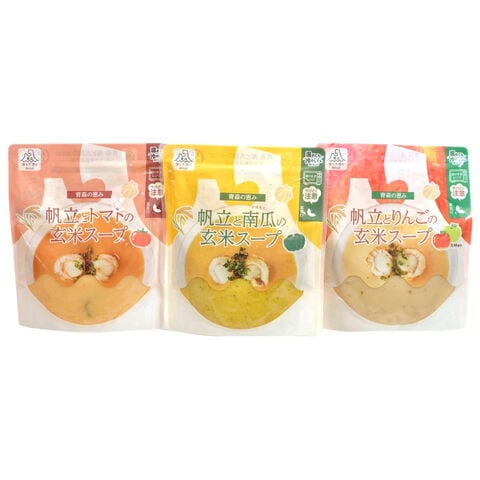 八戸中央青果 青森の恵み 帆立と野菜の玄米スープ ギフト 3種入 トマトほか スープ 温めるだけ 袋のままレンジで 野菜スープ 非常食 ポスト投函便