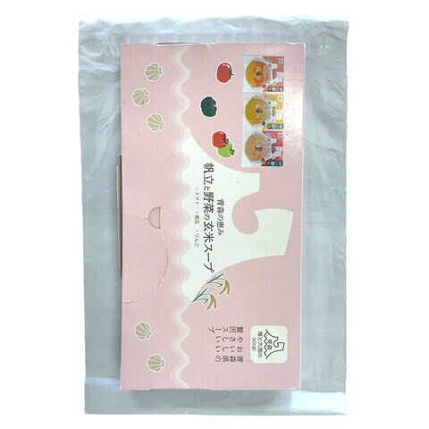 【原材料】<トマト>トマト(青森県産)、ホタテ、全粉乳、オニオンソテー、砂糖、貝柱だし、玄米粉、バター、にんにく、食塩/増粘多糖類、加工デンプン、(一部に乳成分・小麦・大豆を含む)