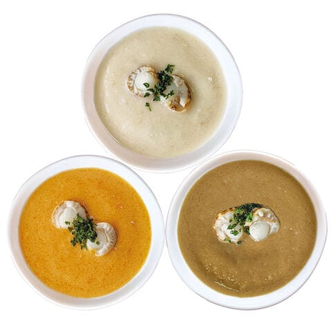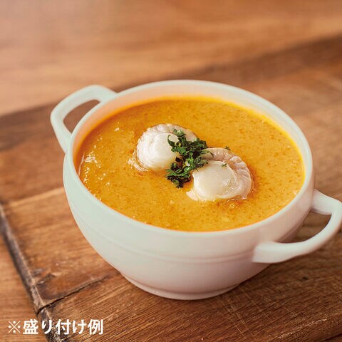 【原材料】<人参>人参(青森県産)、全粉乳、ホタテ、オニオンソテー、貝柱だし、砂糖、玄米粉、バター、にんにく、食塩/増粘多糖類、加工デンプン、(一部に乳成分・小麦・大豆を含む)