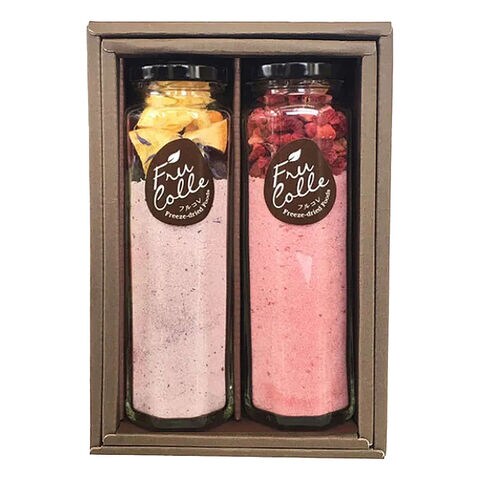 「フルコレ フルーツシュガー 八角瓶 ギフトセット」は、生のフルーツから水分だけを取り除いたフリーズドライフルーツとグラニュー糖をブレンドした、フルーツシュガーの詰め合わせです。フルーツの美しい色とかたちをそのままに、フレッシュな香りを封じこめました。華やかな色合いはギフトやプレゼントにおすすめです。