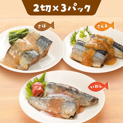 「子どもようおさかなさん 煮魚 アソートセット」は、さんまみぞれ煮、さばゴマ味噌煮、いわし梅煮の小分けパック(各2切入)の詰め合わせです。ご飯のお供はもちろん、お弁当のおかずにもおすすめです。