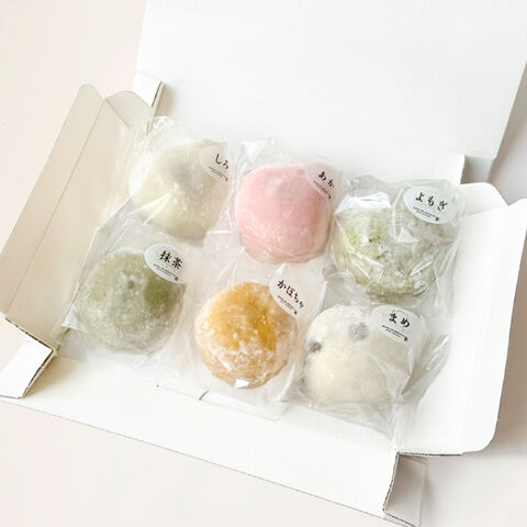 能登の恵みを石川県産のもち米でぎゅっと包み込みこんだ「石川 能登 むらのもちや 冷凍大福 詰め合わせ ギフト」です。しろ(こし餡)、あか(しろ餡)、豆(つぶ餡)、よもぎ(つぶ餡)、抹茶(しろ餡)、かぼちゃ(かぼちゃ餡)をセットにしました。それぞれ味わいの違いを食べ比べてお楽しみいただけます。出来立ての美味しさをそのまま閉じ込めて冷凍しましたので、必要な時に自然解凍のうえお召し上がりください。おやつ、お茶請け、お茶菓子などにどうぞ。化粧箱に入れてお届けしますので、ギフト、プレゼント、手土産などにもご利用ください。