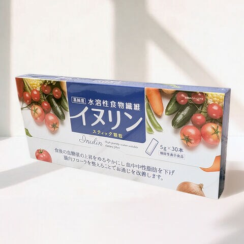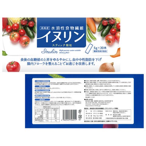 届出表示:イヌリンは食後の血糖値の上昇を緩やかにし、血中中性脂肪を下げ、おなかの調子を整えることが報告されています。